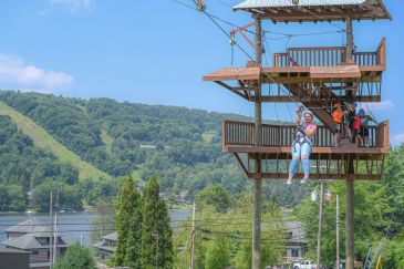 An aerial adventure park featuring ziplines, free falling, and obstacle courses.